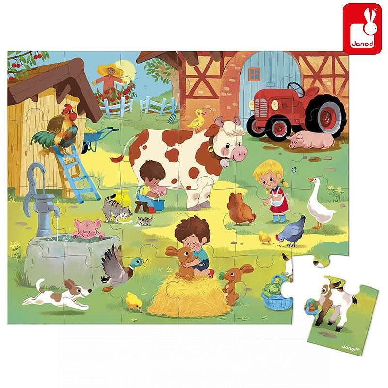 Janod | Картонен пъзел от 24 части | Един ден във фермата