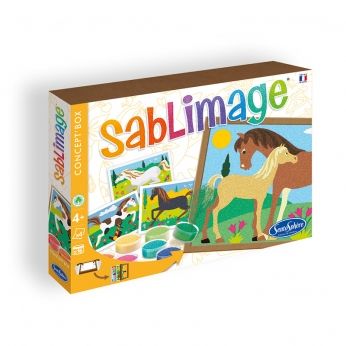 Креативен комплект за оцветяване на френската фирма Sentosphere. Рисувайки забавни и цветни картини с различни мотиви детето ще се забавлява без дори да се цапа. Създавайки произведенията си с помощта на пясък ще спести много изцапани повърхности, но ще се запази удоволствието от смесването на красиви цветове.