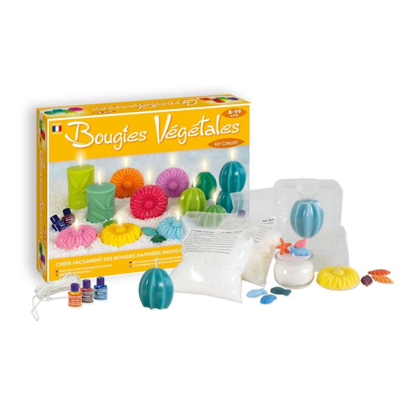 Комплект за направата на свещи със стеарин и восък. Включва 300 г стеарин, 300 г рапичен восък, 3 форми, мерителна чаша, 3 аромата, 3 капкомера, фитил и инструкции.