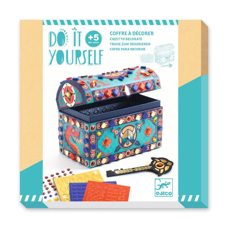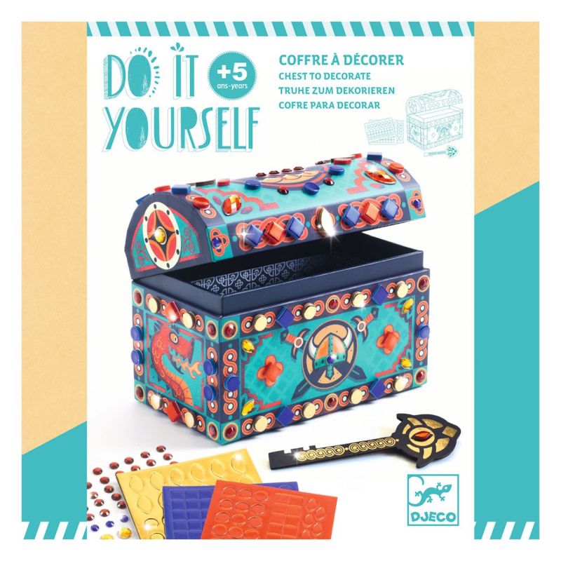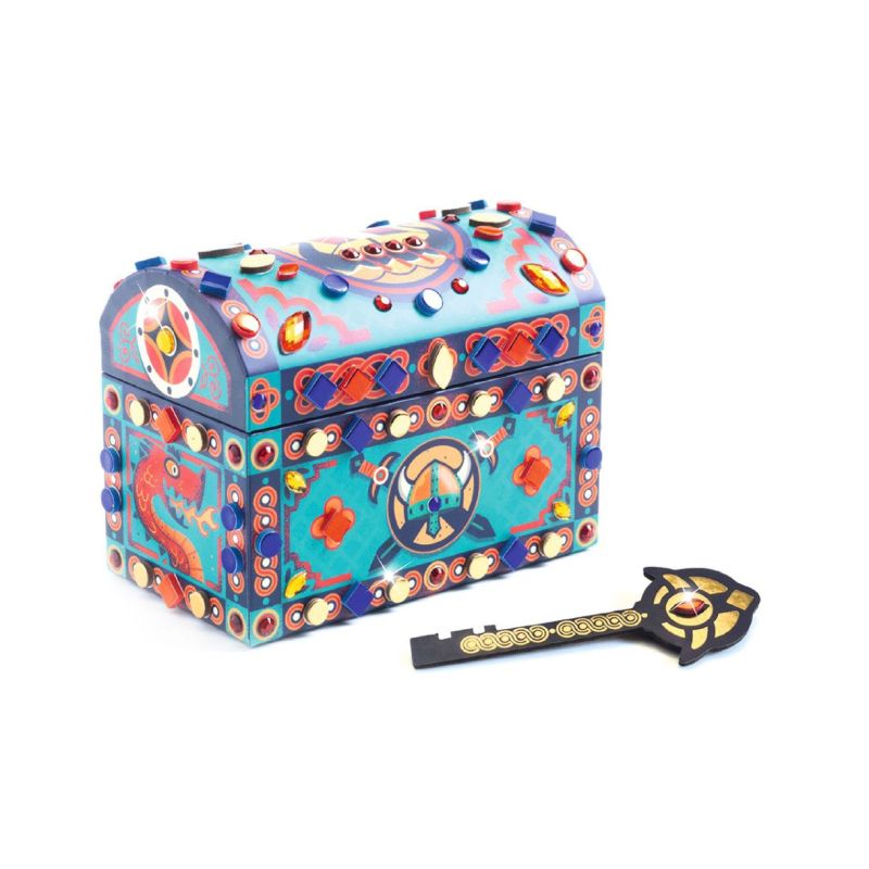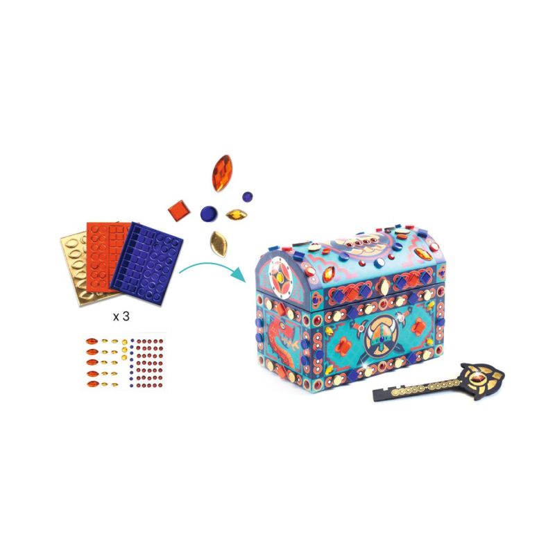 Картонен сандък за украса с мозайка и кристали. Включва сандък, фалшиво дъно с ключ, 3 листа мозайка, лист с камъни и инструкции.