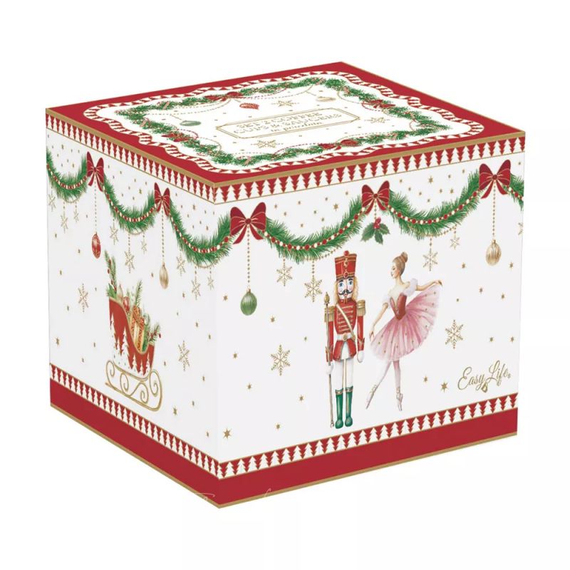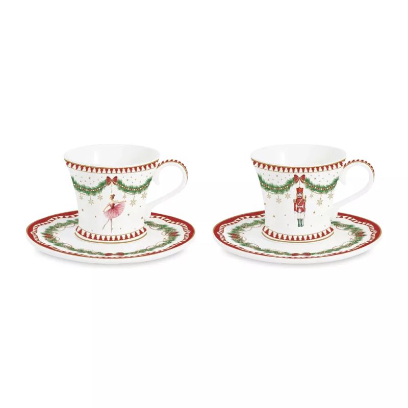 Комплект от 2 броя порцеланови чаши за кафе по 80мл с чинийки в цветна кутия от колекция MAGIE DE NOEL на един от водещите италиански производители на порцеланови съдове и прибори EasyLife.