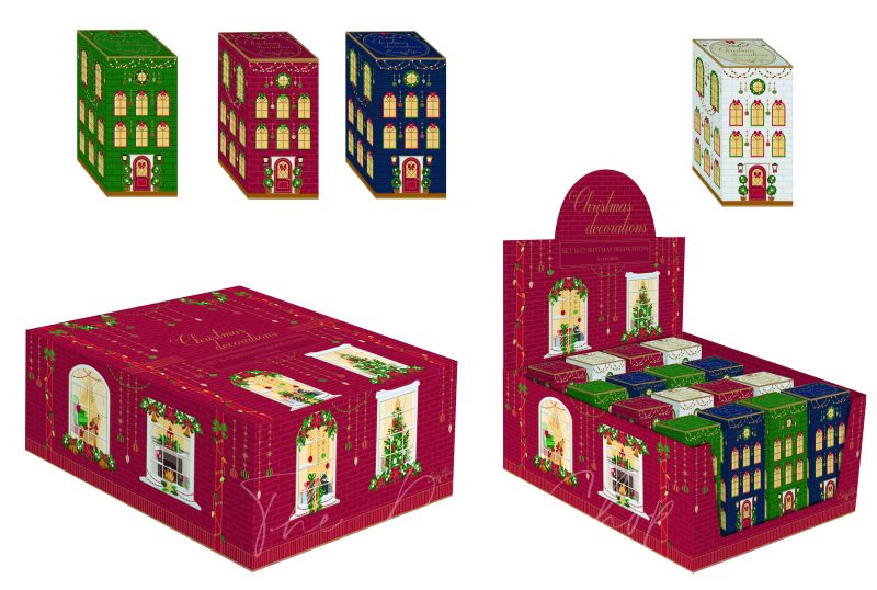 Комплект от 16 коледни орнамента, изработени от доломит, в асортимент, опаковани в дисплей от серията FESTIVE AVENUE на EasyLife.