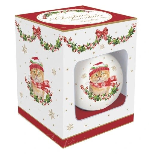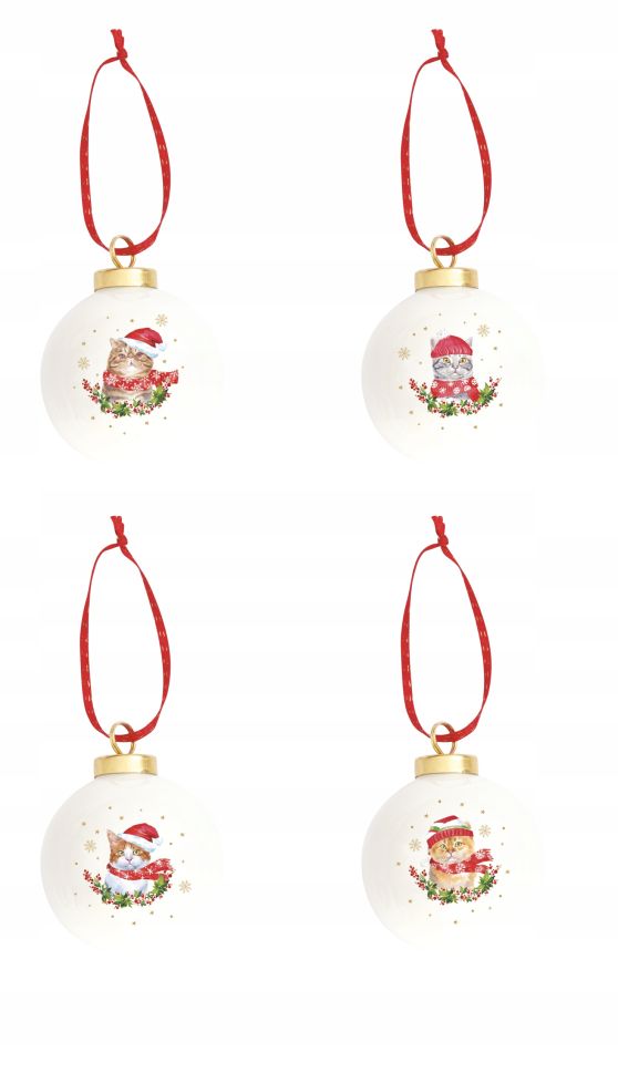 Коледна топка за елха от доломит с Ø 7 см, комплект от 4 декорации в цветна кутия от серията CHRISTMAS CATS на EasyLife.