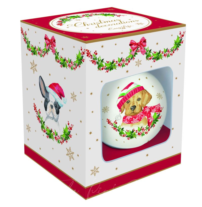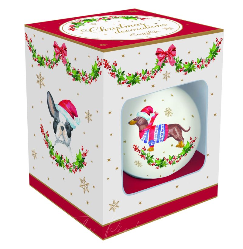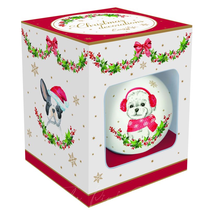 Коледна топка за елха от доломит с Ø 7 см, комплект от 4 декорации в цветна кутия от серията CHRISTMAS DOGS на EasyLife.