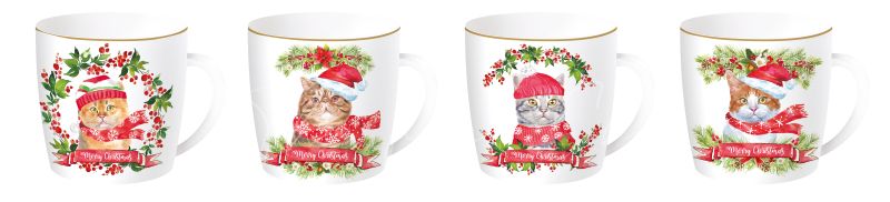 EasyLife | Порцеланова чаша 350 мл в метална кутия 4 вида | CHRISTMAS CATS