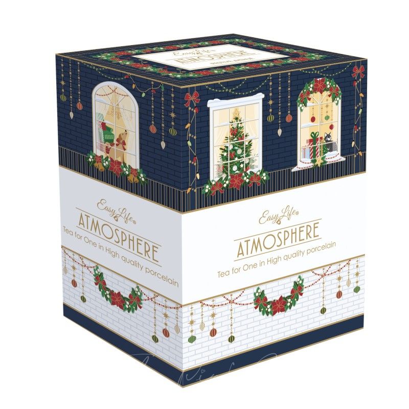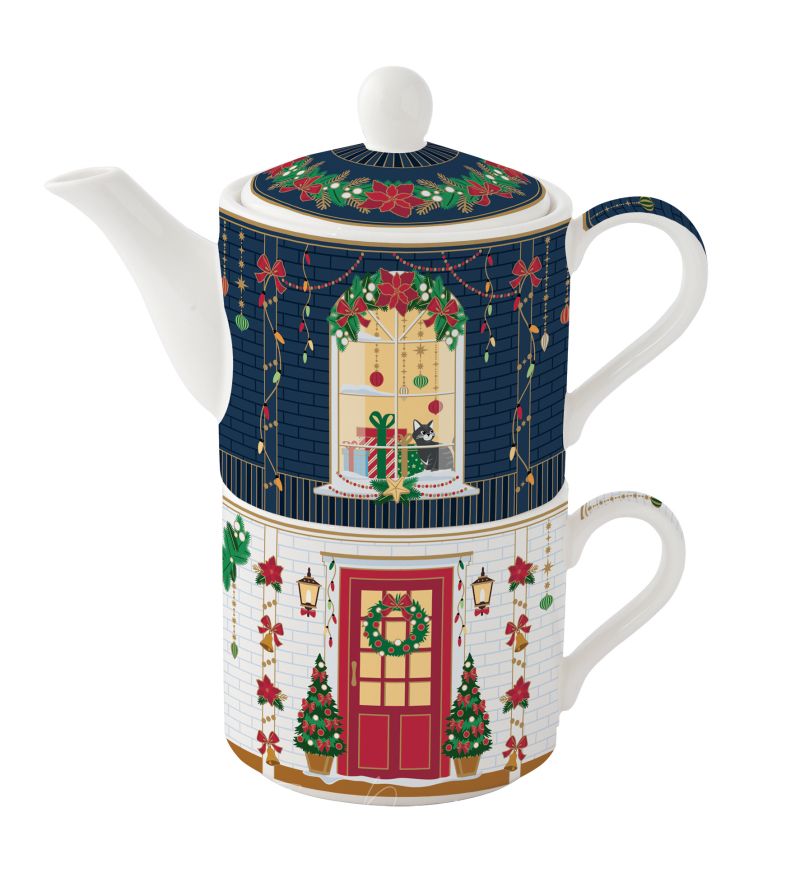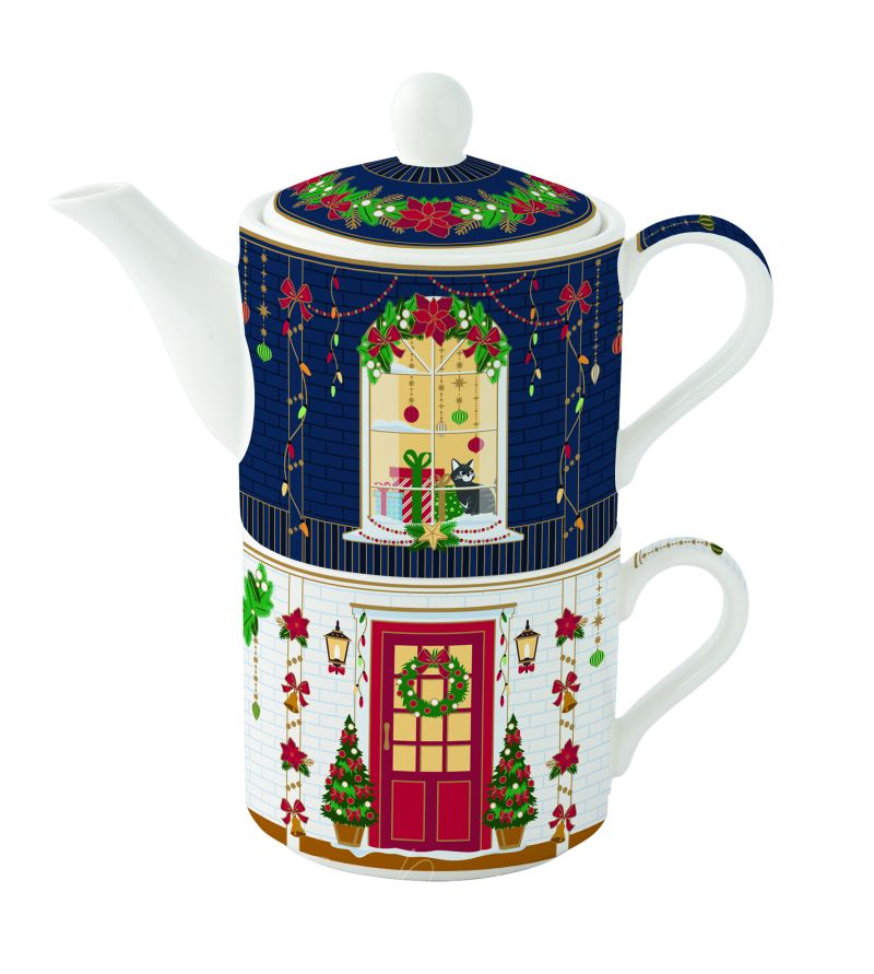 Комплект 'Чай за един' от порцелан съдържащ 280 мл чайник и 280 мл чаша в цветна кутия от серията FESTIVE AVENUE на EasyLife.