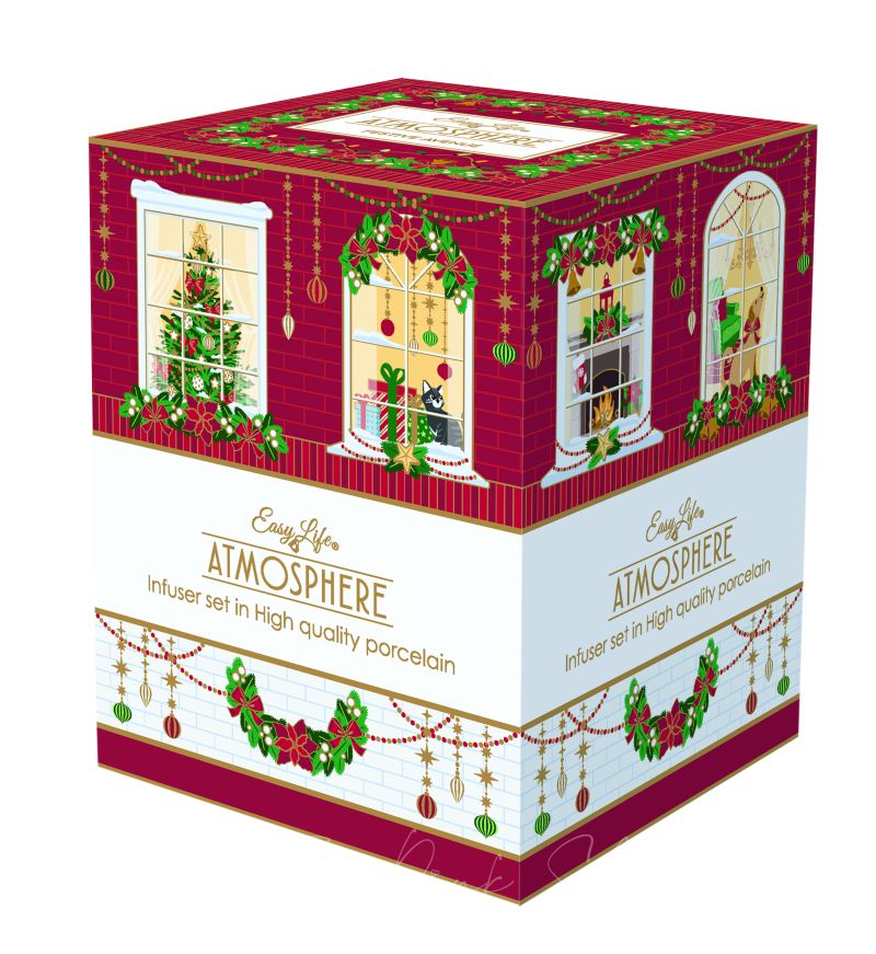 Порцеланова чаша с вместимост 350 мл, с капак и метален инфузер в цветна кутия от серията FESTIVE AVENUE на EasyLife.