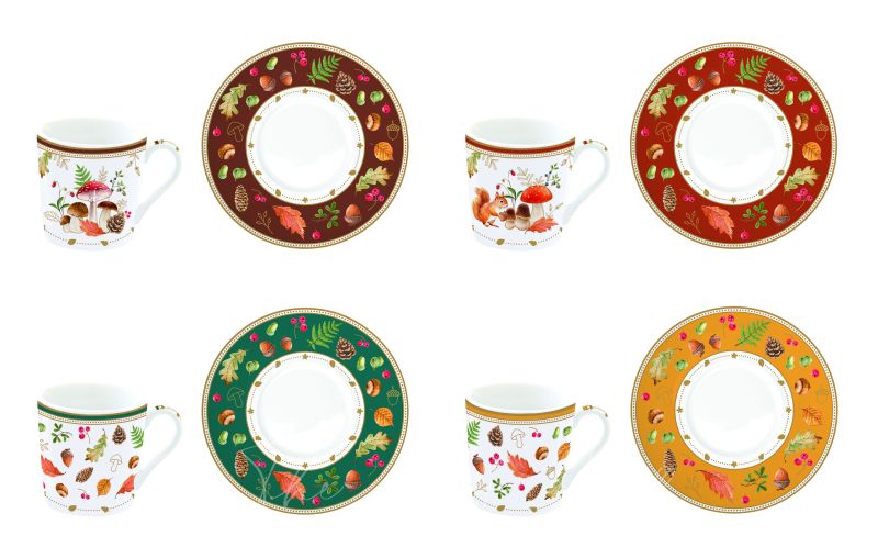 EasyLife | Комплект 4 порцеланови чаши 100 мл с чинийки | AUTUMN BREEZE
