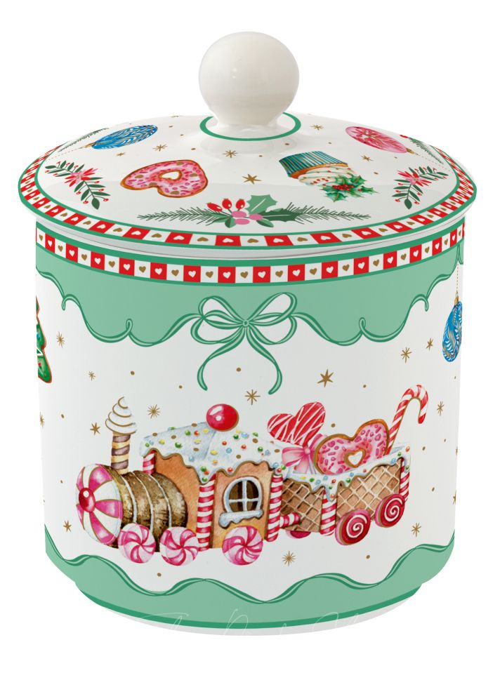 EasyLife | Порцеланова буркан с капак Ø 10,5x13 см | SWEET CHRISTMAS