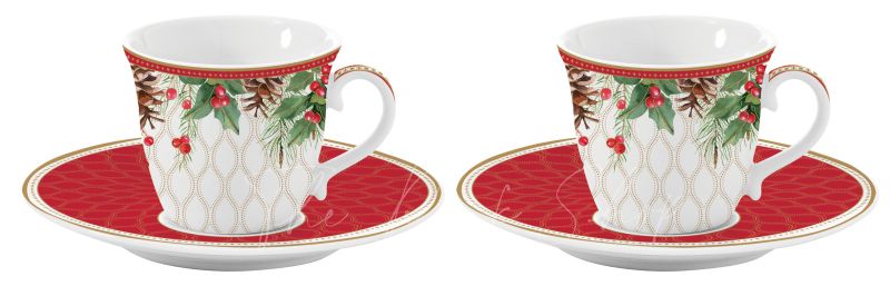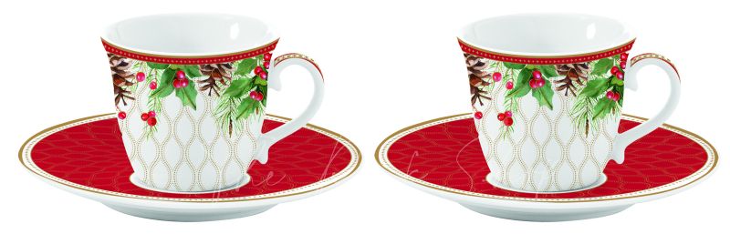 EasyLife | Комплект 2 чаши за кафе с чинийки 80 мл | CHRISTMAS BERRIES
