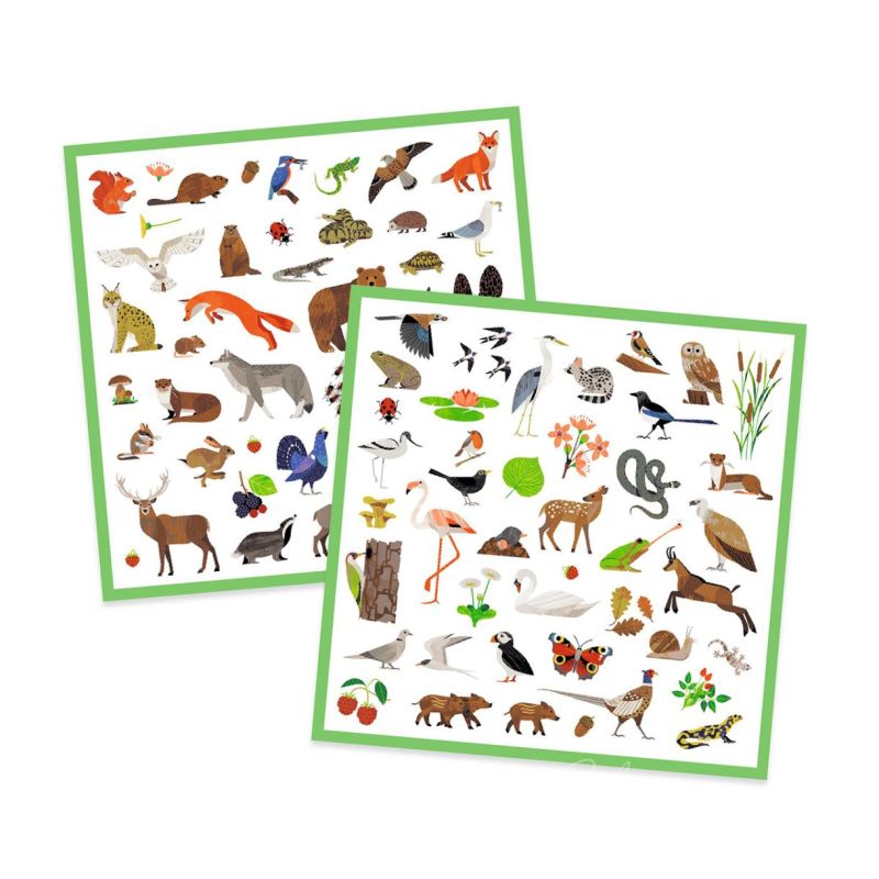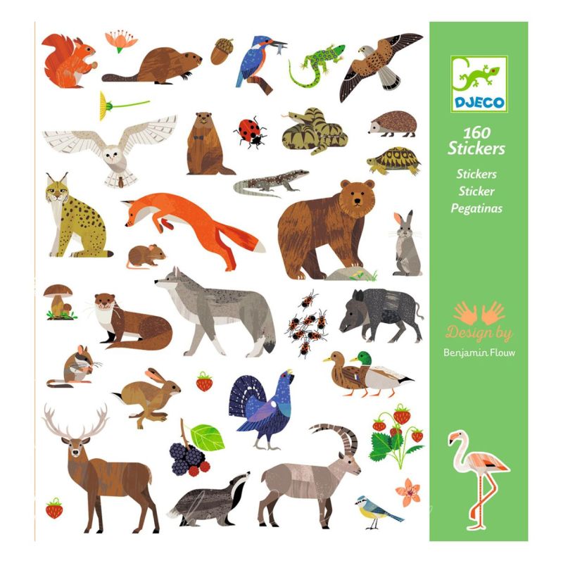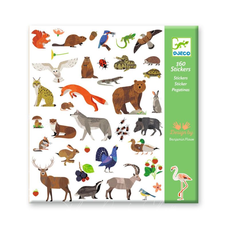 Комплект от 160 стикера с животни от Европа – елени, лисици, диви свине и други. Включва 2 копия на 2 различни листа. Подходящи за декорация или допълнение към рисунки. FSC® сертифицирана картонена опаковка.
