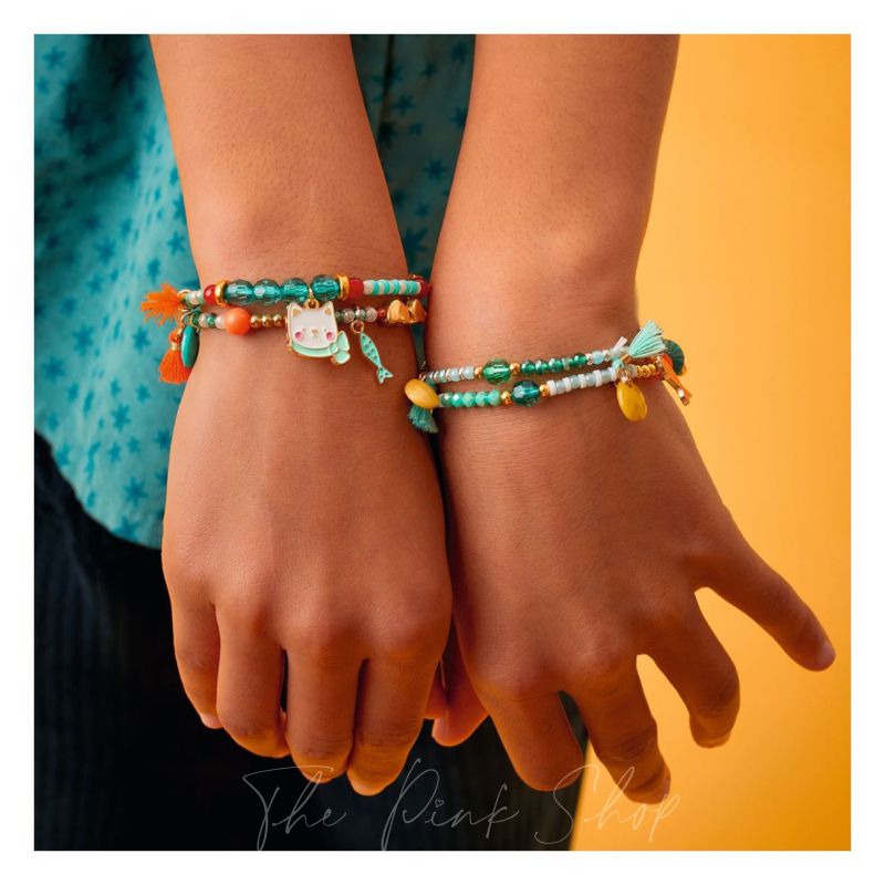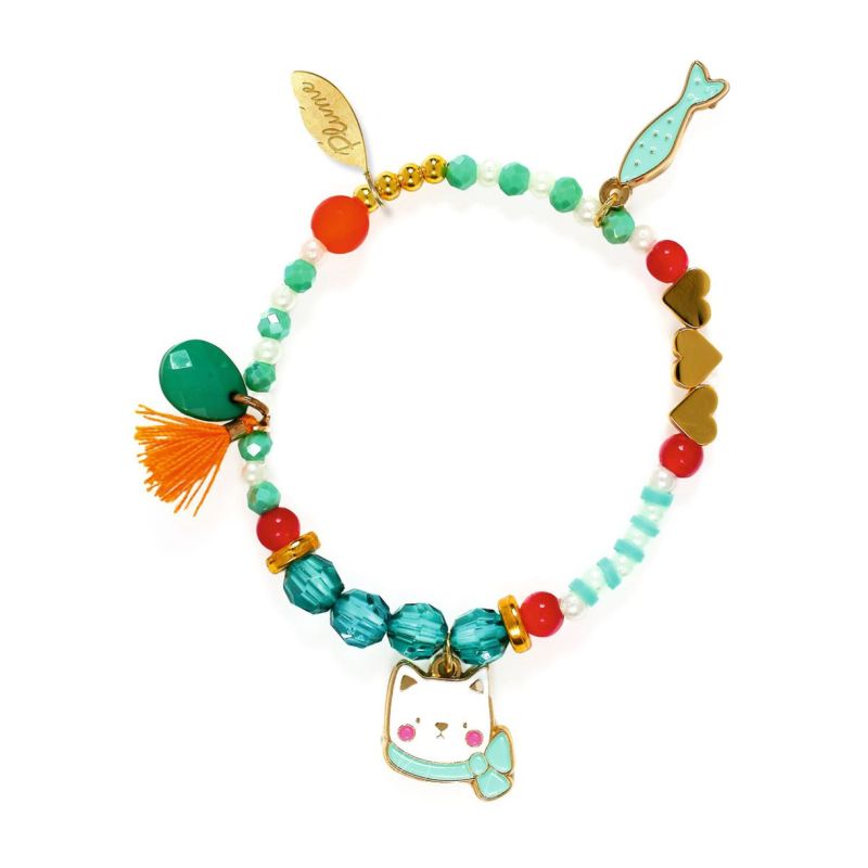 Ще изглеждате изключително сладко с гривната Hanaé, вдъхновена от котките. С акрилни мъниста и две емайлирани метални висулки с котка и риба, както и памучна помпончеста пискюл, тя ще добави нотка забавност и елегантност към китката ви. Двойната еластична нишка я прави изключително устойчива и лесна за поставяне, без да е необходима закопчалка. Съдържание: 1 гривна с акрилни мъниста и 2 различни висулки – емайлирана метална котка и риба – и 1 памучen пискюл. Предимства: Висококачествени материали: емайлирани неръждаеми стоманени висулки и леки, устойчиви акрилни мъниста. Двойна еластична нишка за допълнителна устойчивост, лесна за поставяне без закопчалка.------------