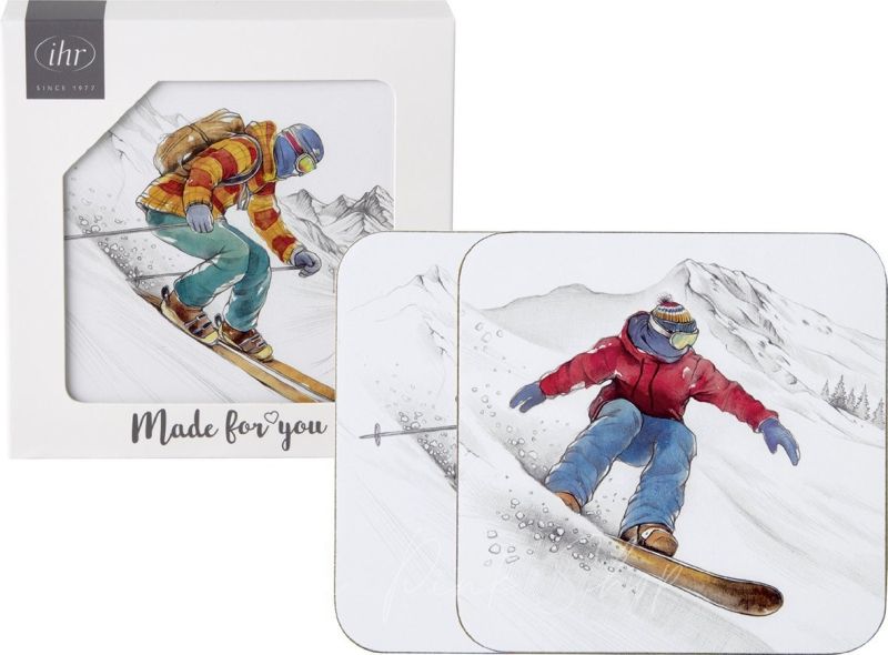 IHR | Коркова подложка за чаша - 4 броя / 2 дизайна | BLACK SKI RUNS