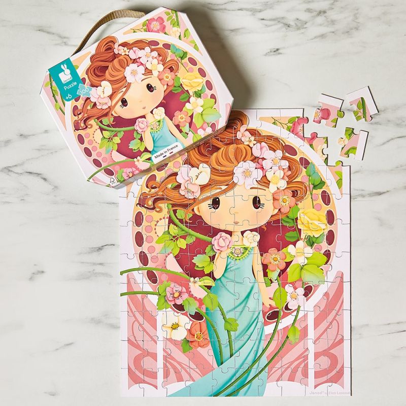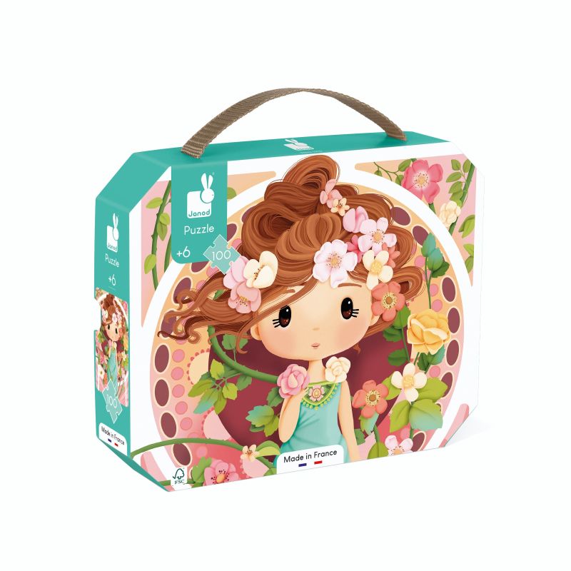 Картонен пъзел от 100 части, вдъхновен от женските портрети на Алфонс Муха и стила ар нуво. Подреден в здрава кутия тип куфар с дръжка за лесно пренасяне. Подходящ за по-големи деца и любители на изкуството.