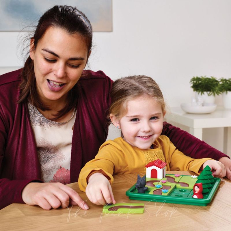 Имало едно време… Помогнете на малката Червена Шапчица да избере верния път до къщата на нейната любима баба, но внимавайте защото вълкът дебне и иска да стигне пръв. И както и при играта "Трите прасенца", така и тук има красива книжка с твърди корици и красиви илюстрации, по които Вашето дете да разкаже приказката. Изберете предизвикателство, поставете дърветата, къщата и Червената шапчица на показаните места. Подредете парчетата пъзел "път" така, че малката червена шапчица да може да отиде до своята баба. Колкото по-сложно става предизвикателството, толкова повече парчета пъзел "път" ще са ви необходими. Има само едно вярно решение. Съдържание: 5 парчета пъзел "път" и "цветя" 2 фигурки (вълк и Червена шапчица) 3 дървета 1 къща книжка с 48 предизвикателства книжка с картинки с твърди корици Умения: Концентрация Планиране Решаване на проблеми Пространствено мислене Зрително възприятие
