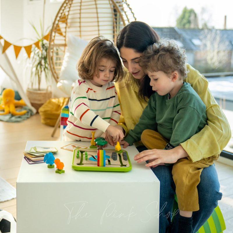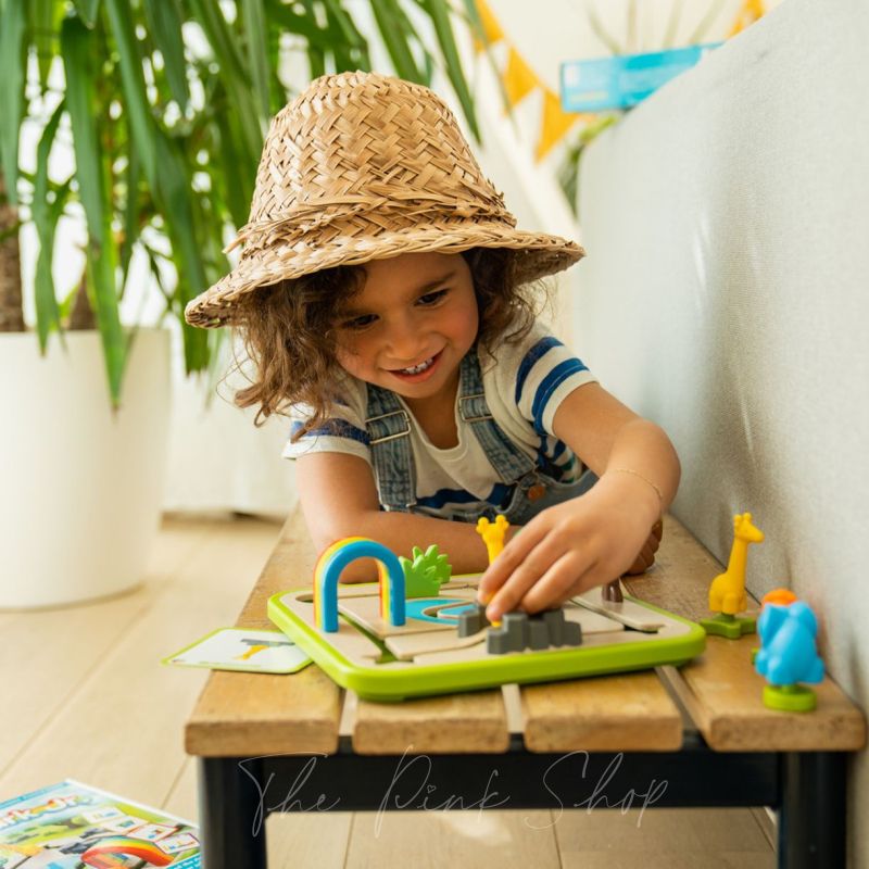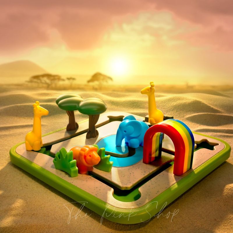 Можете ли да поставите животните в перфектната позиция за снимка? Преместете ги по дъската,но не забравяйте, че лъвът не обича водата, слонът не може да се катери по скалите, а жирафите са твърде високи, за да се поберат под дърветата! Образователна игра 2 в 1 за малки деца: решавайте пъзелите или просто играйте и развихрете въображението си! Научете повече за формите и понятията като ляво, дясно, отгоре, отпред и отзад. Сортирайте формите и следвайте пътя. Готови ли сте да се забавлявате?