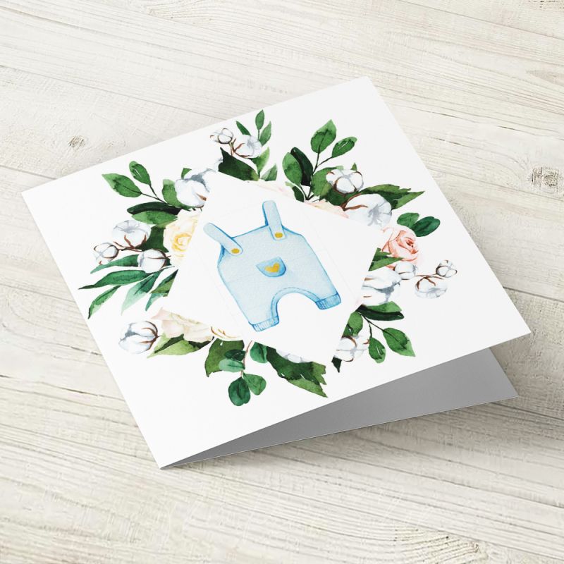 Картичка за бебе с авторска илюстрация върху акварелен картон.
