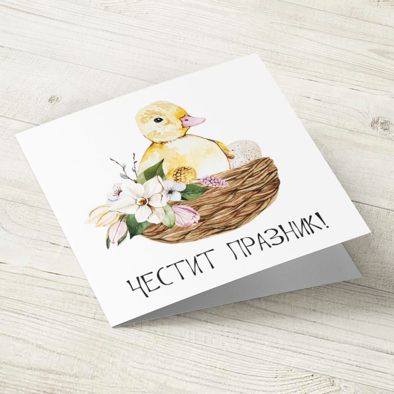 Картичка за празник с авторска илюстрация върху акварелен картон.