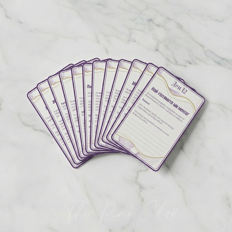 - 12 карти с ежедневни напътствия - мотивиращи мисли и похвати с които да попълниш таблото по най-вдъхновяващия начин