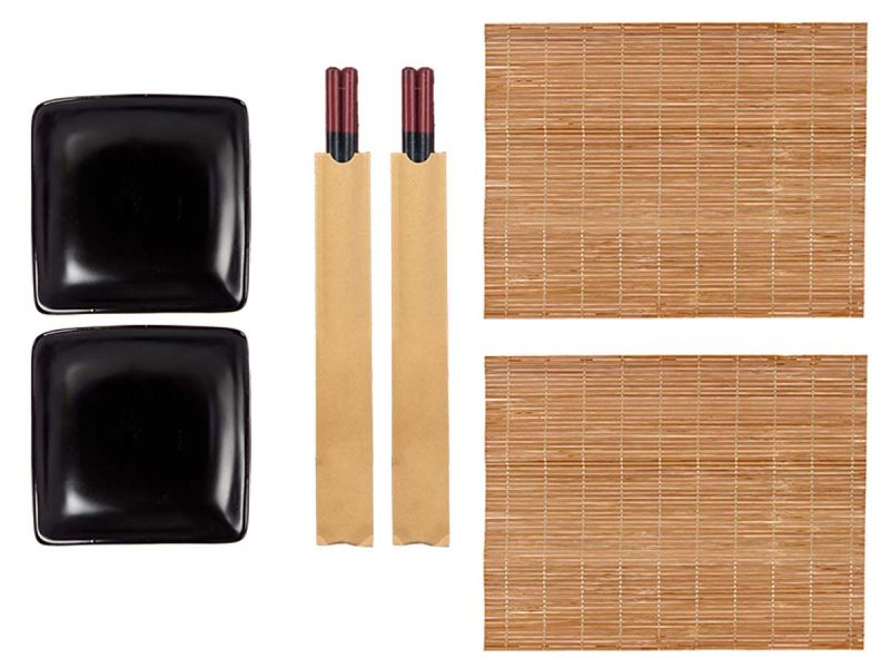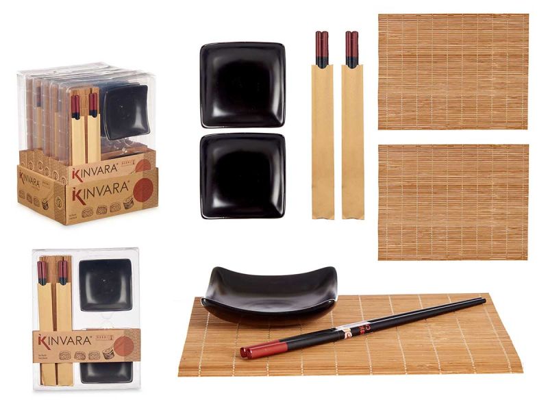 Arte Regal | Комплект за суши от керамика и бамбук, черен, 6 части