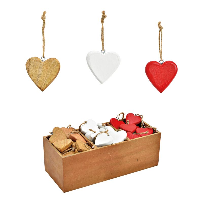 G. Wurm | Декоративна закачалка сърце от дърво, червено/бяло/кафяво