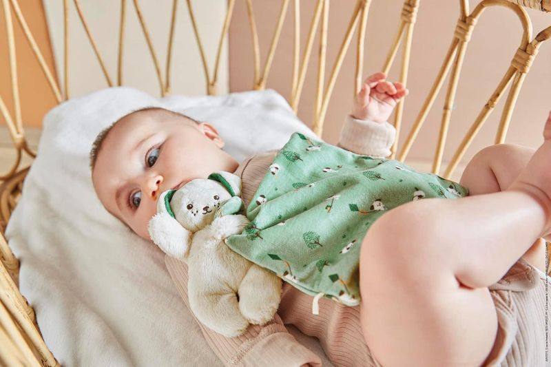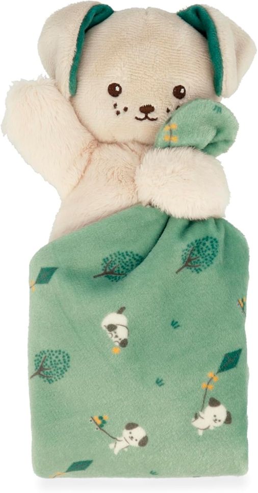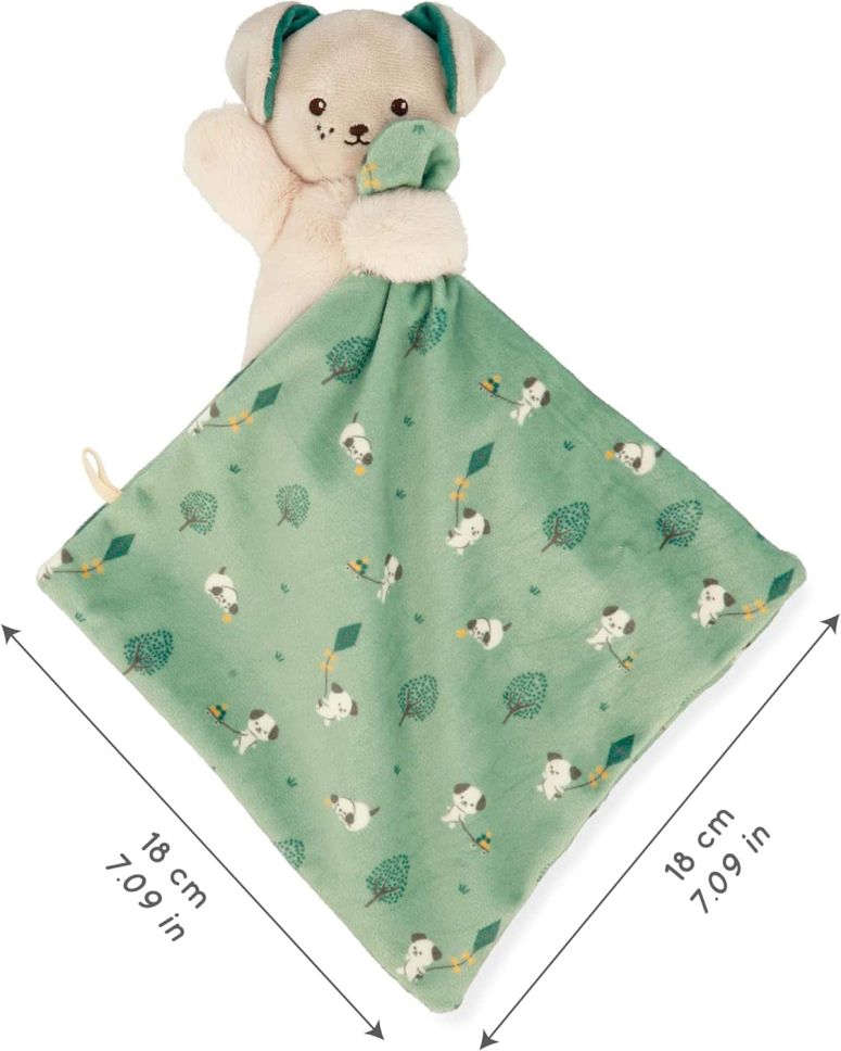 Нежно дуду зелено куче с одеялце, създадено да бъде първи текстилен спътник на бебето още от раждането. Меката материя и практичната форма го правят подходящо за гушкане и комфорт.